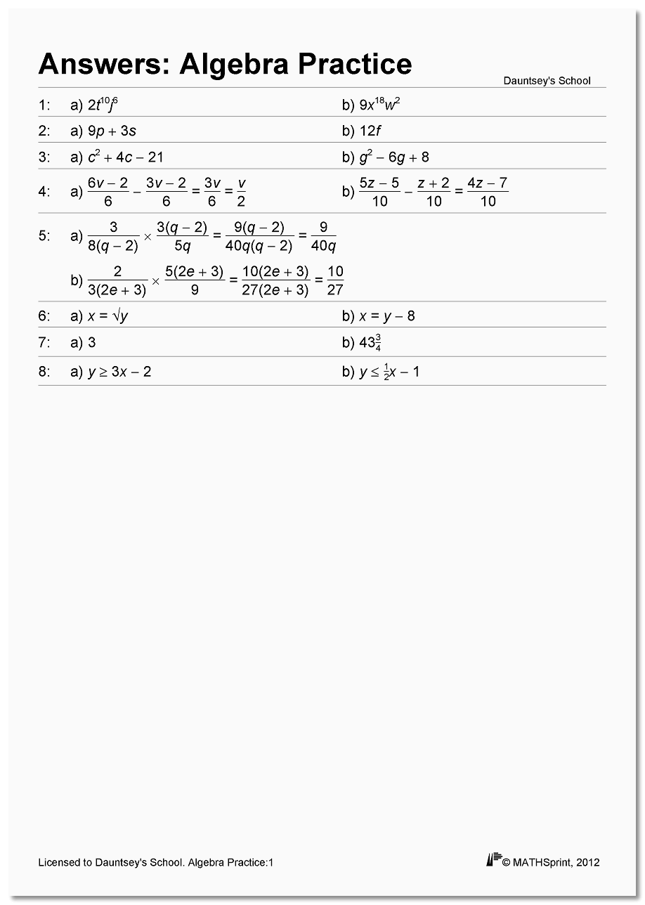 Download the 'Details' PDF below for a full topic list and 16 sample worksheets (with solutions) which you are free to use in class - these give just the briefest taster of what MATHSprint can do...