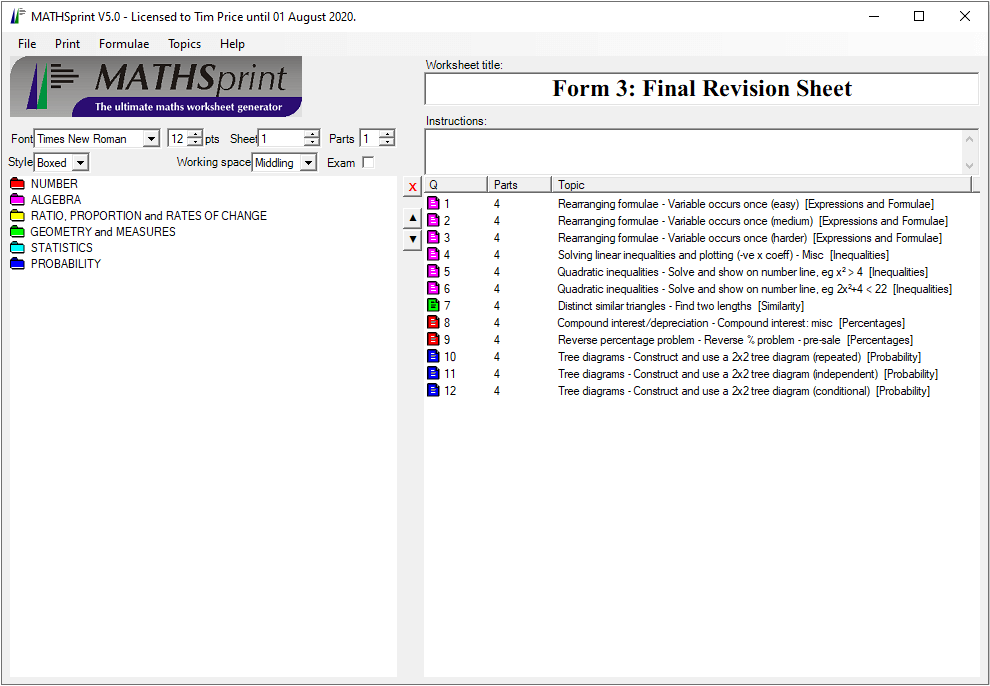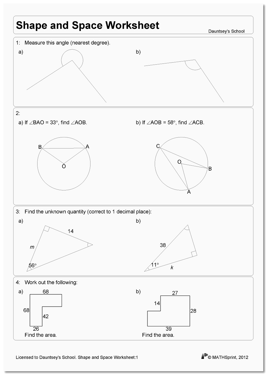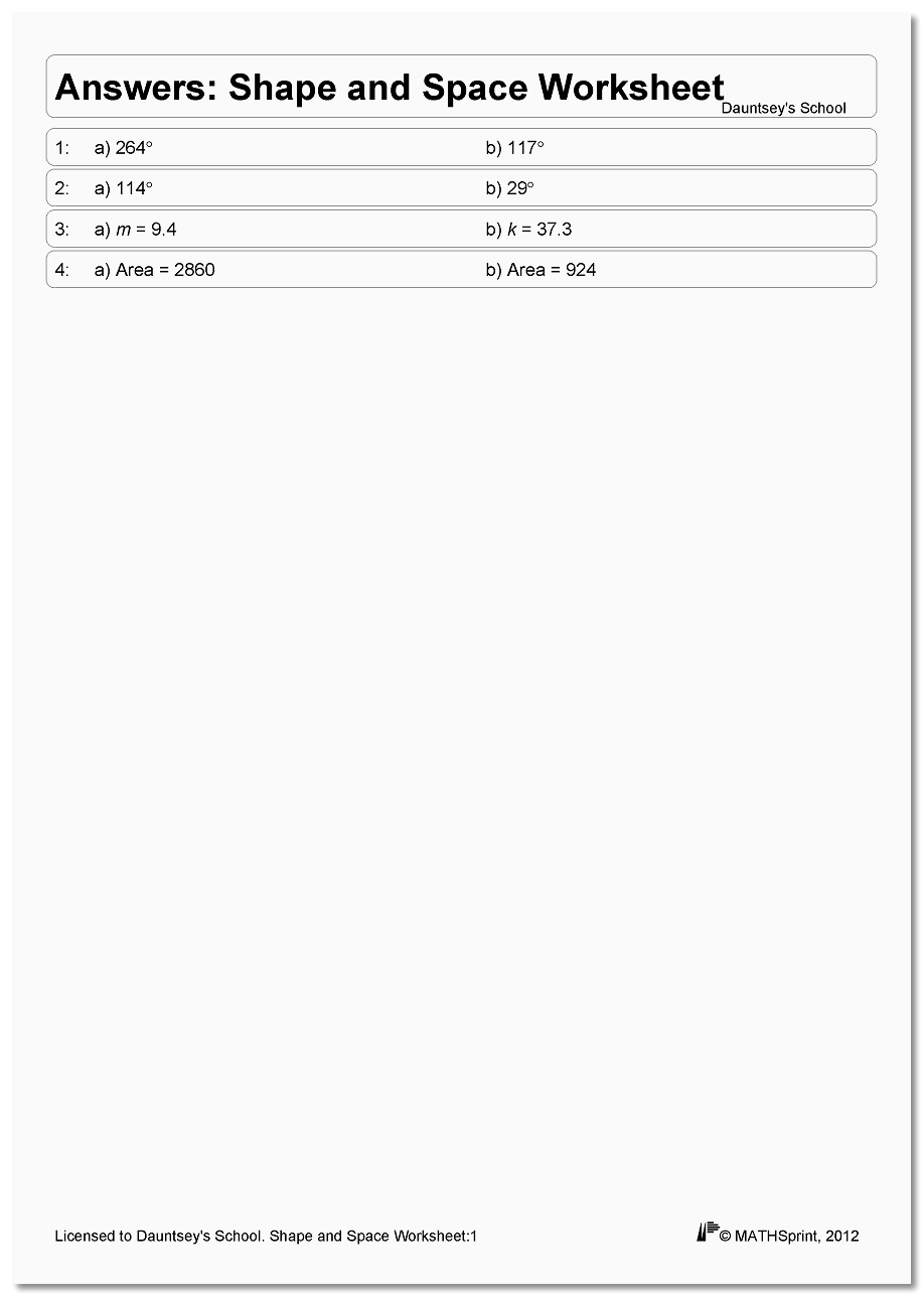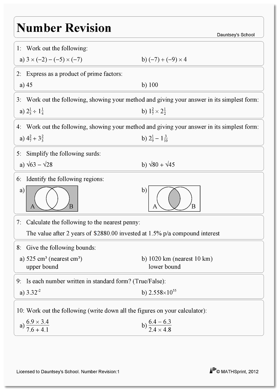 Furthermore, the fact that MATHSprint can combine diverse topics within the same worksheet can save you money by reducing the need for several separate worksheets (on Number, Algebra, Shape and Space, etc.) when preparing for examinations.