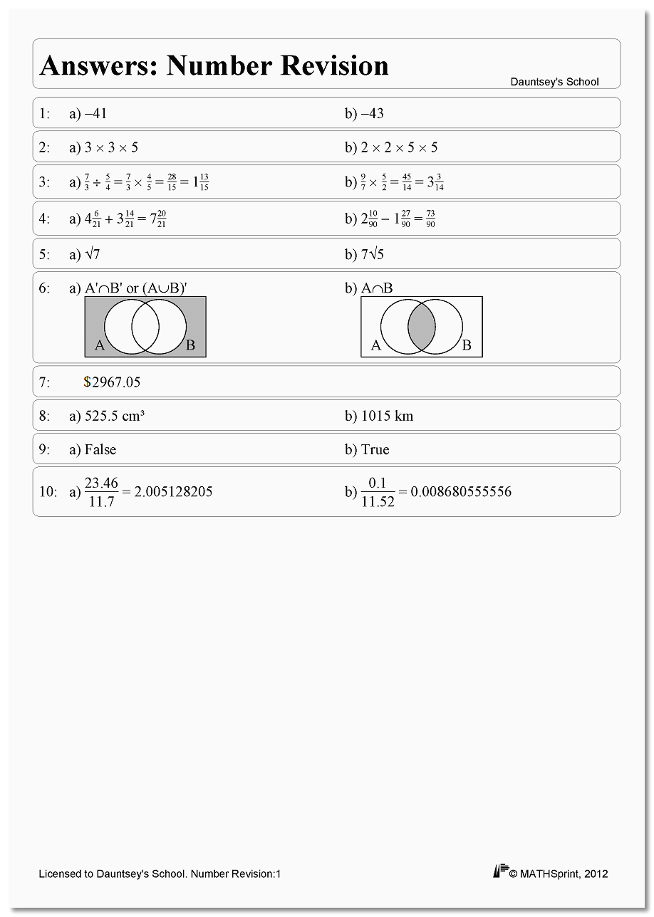 This starts to give some idea of why a good Maths worksheet generator is hard to develop. Here at Transfinite we have devoted sixteen years to this project; it has proved fascinating in terms of the challenges to be overcome (as hinted at above) and we have gained a huge amount of experience regarding the mathematics of generating mathematical problems and displaying their solutions. I hope you enjoy using MATHSprint, and please feel free to feed back any comments and suggestions.